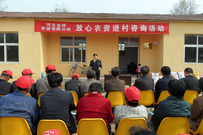 本次活動中,河北金橋農資有限公司農藝師為村民講解了當前小麥施肥要點及病害防治,當前棉花種植注意的問題,各種肥料的簡易識別方法等知識;河北金橋農資有限公司董事長、總經蘇東橋向省領導及該村村民簡要介紹了公司的發展歷程,并當場做出了承諾“金橋農資無假貨,保證買到放心肥”;省供銷社領導李處長代表省供銷作了表態,今后后將不斷加大為農服務力度,讓農民真正得到實惠。